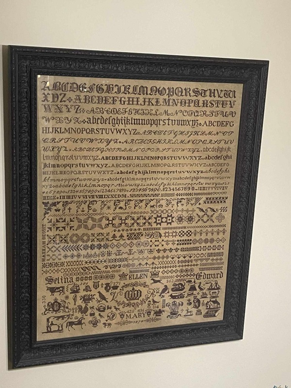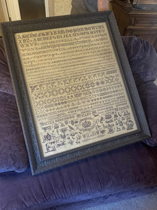 Stephanie Dickerson has just finished stitching “EDFS 1807” and framed it. A little gem! Beautiful. Another magnificent specimen: Dorothea shows her “PAPA ca. 1880” not framed, but as a wall hanging. I would like to thank you very much for the photo and for the opportunity to present it here. Excellent!